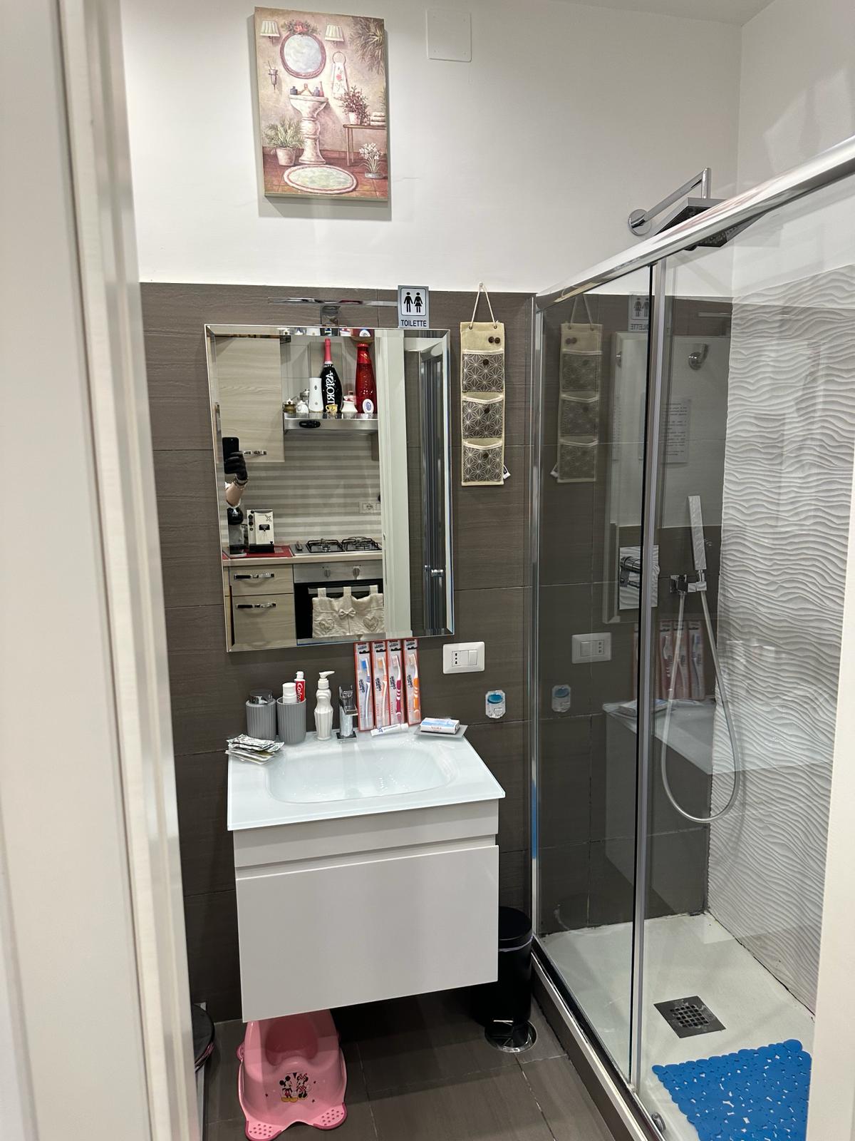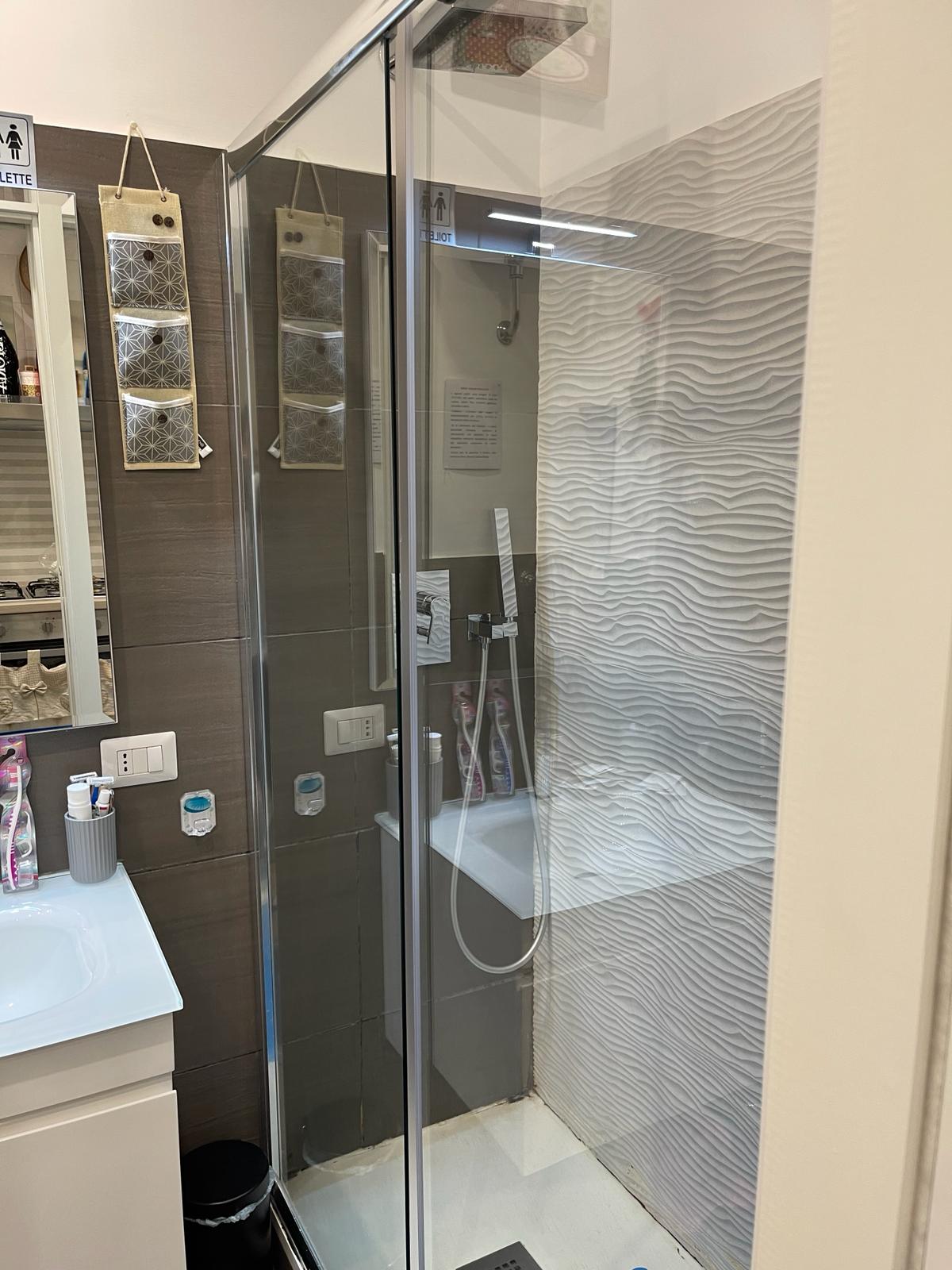 INFO: Ampia cabina doccia. Finestrino su strada.