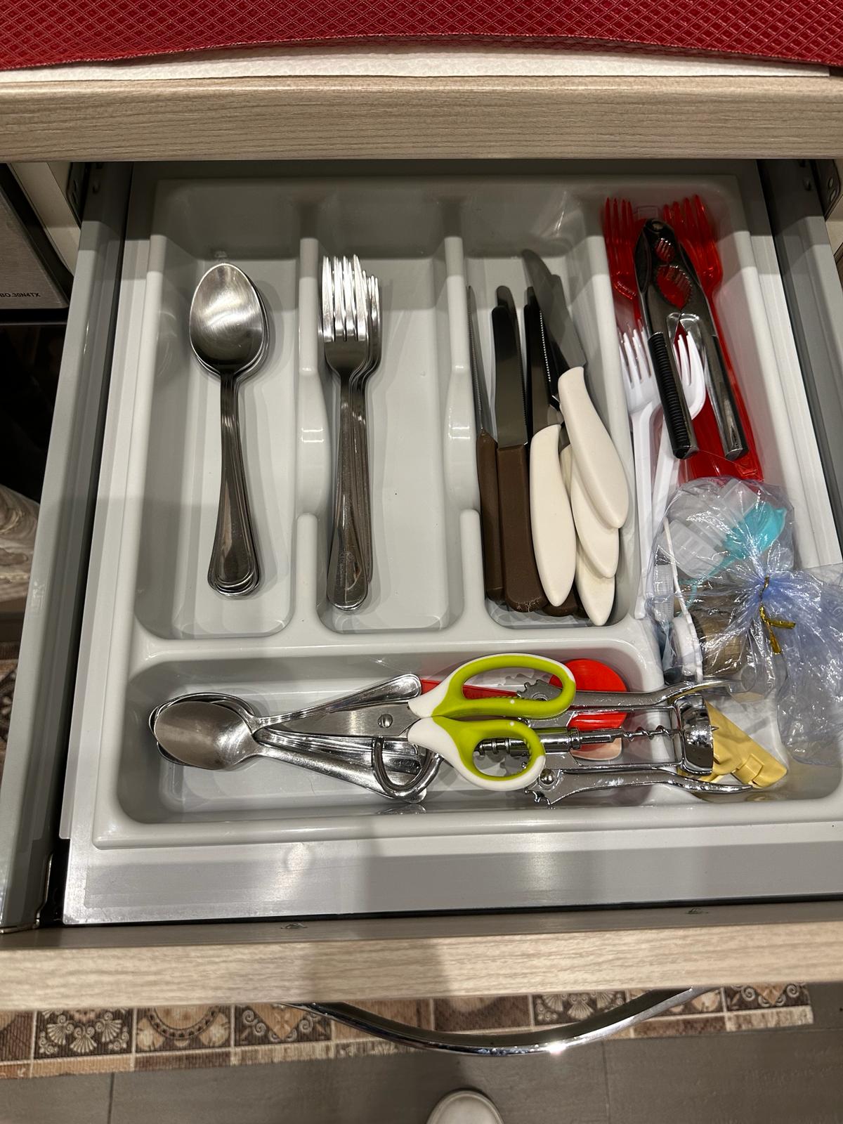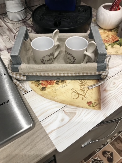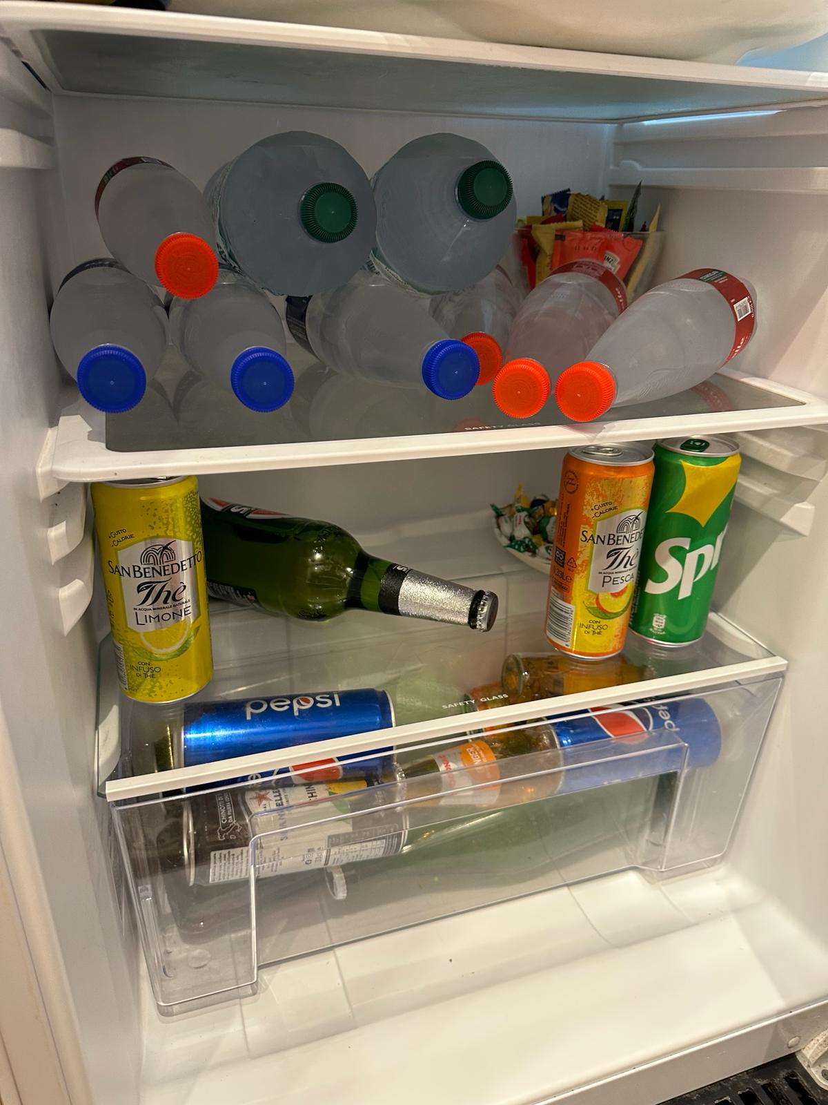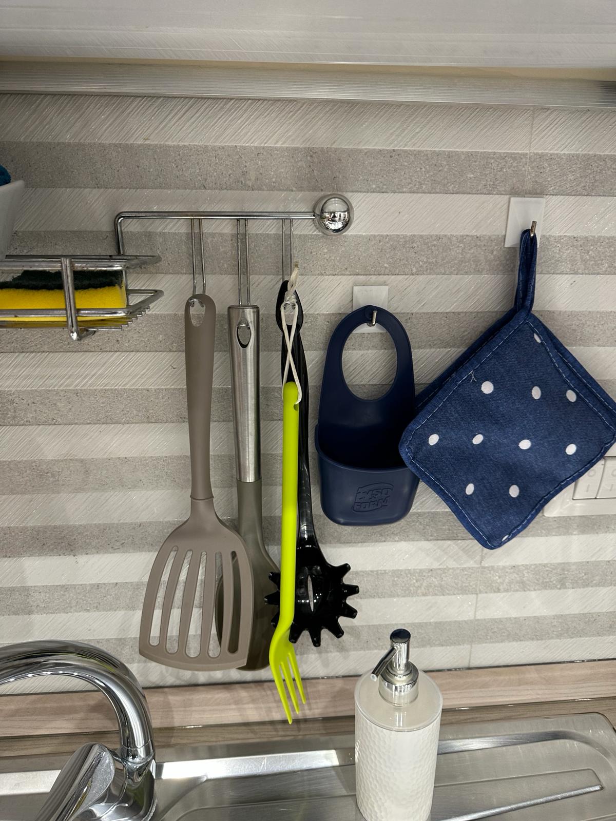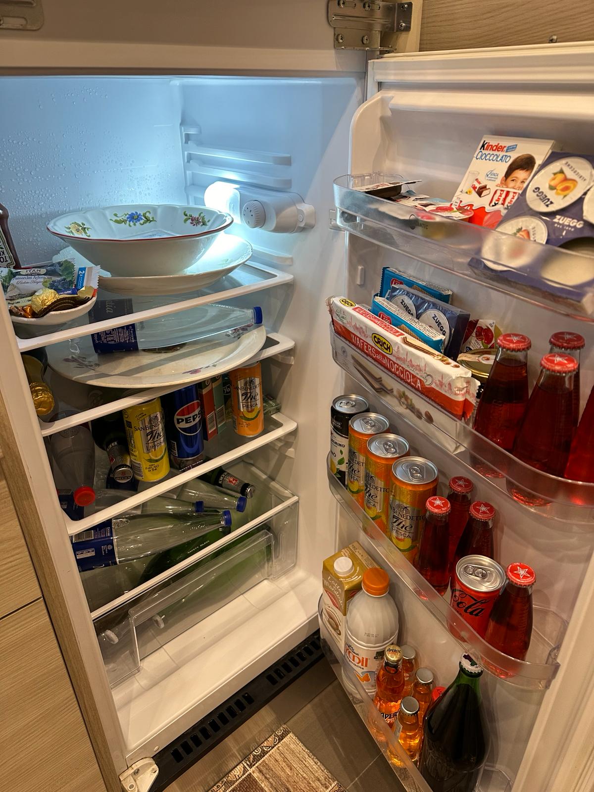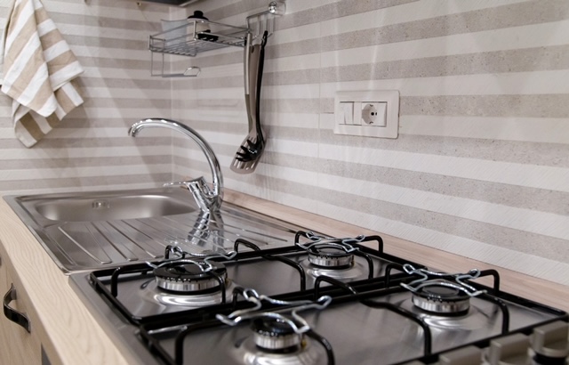 CUCINA: Cucina completamente attrezzata (piatti, pentole, forno, fornetto, frigo, macchina caffè, bollitore, tostapane, mini aspira briciole, stendi panni da interno, ecc...)